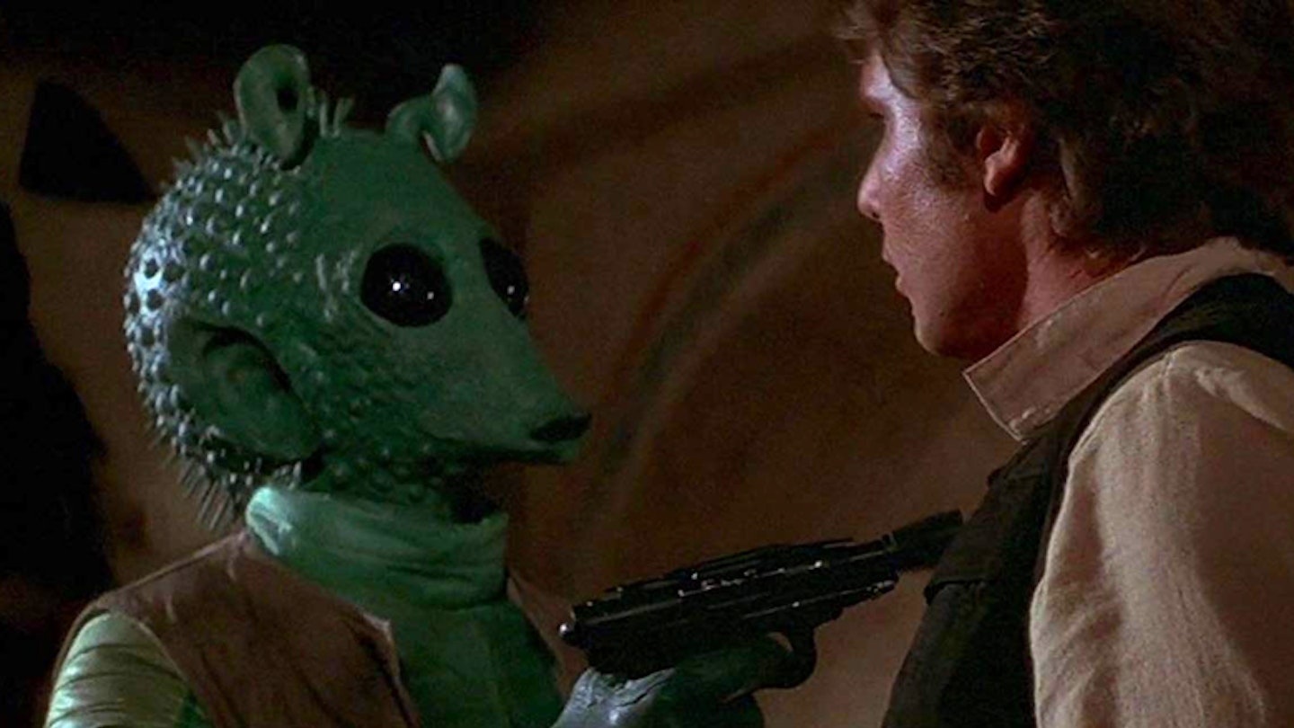 Στην έκδοση 4K Ultra HD του A New Hope το 2019, που προβάλλεται και στο Disney+, προστέθηκε μια νέα ατάκα στη σκηνή του Han Solo με τον Greedo: η εκστόμιση της φράσης “Maclunkey”. Η φράση, στα Huttese, σημαίνει "Αυτό θα είναι το τέλος σου" και η προσθήκη της προκάλεσε έντονες συζητήσεις στους θαυμαστές, προσθέτοντας ένα νέο κεφάλαιο στην ιστορία του περίφημου “Han Shot First”.